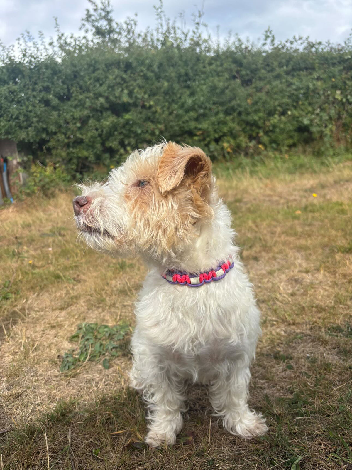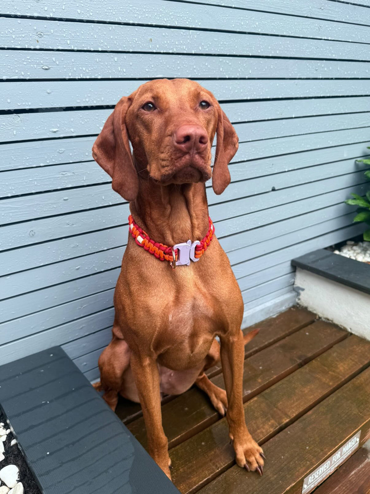 Beautiful Margot in her Red and Orange Anti-tick collar